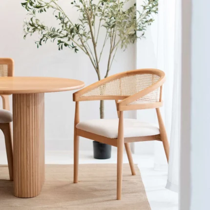 Dioro Dining Chair in Beech Wood and Rattan