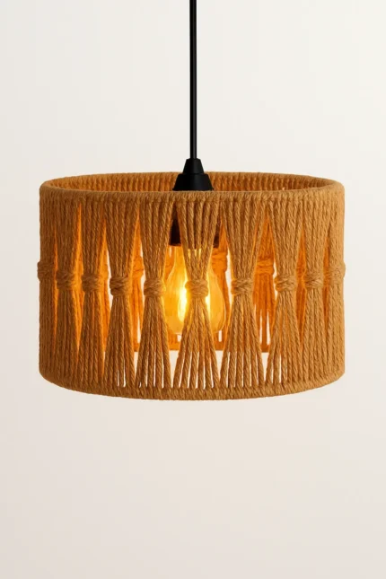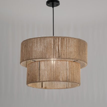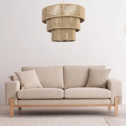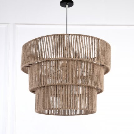 Handwoven burlap chandelier that adds a natural touch to interiors and matches any Boho Decor Style.